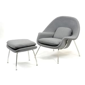 $598.00 Eero Saarinen Womb Chair & Ottman - In Light Gray. Ships In 24 Hours With Money Back Guarantee!