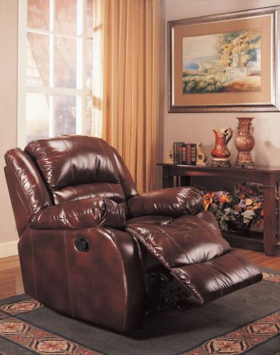 Rocker Recliner in Brown Bycast Leather by Coaster Furniture Description