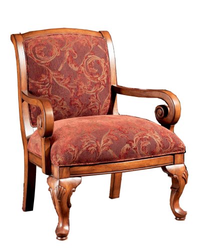 Buy Powell Hopewell Damask Upholstery Accent Chair, Fruitwood Finish. With Special Pomotions Fast Shipping