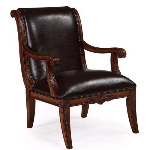 The Powell Alexandria Scroll Back Accent Chair with Deep Brown Leather Description